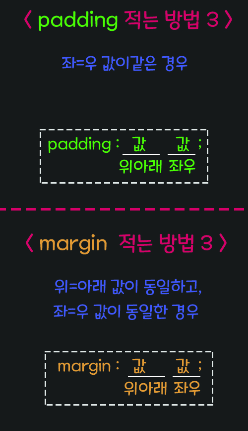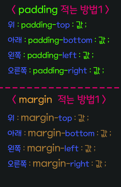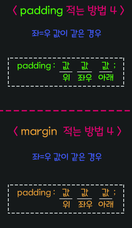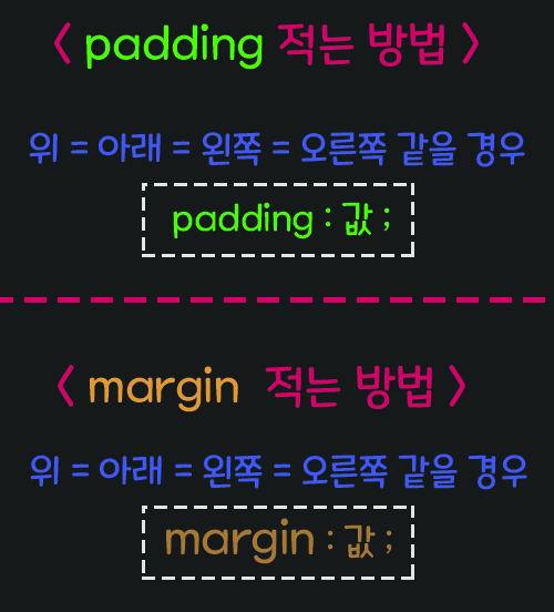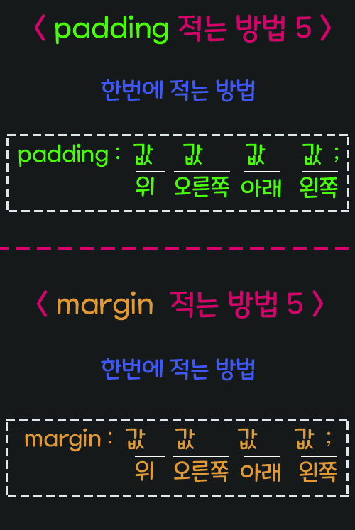 마찬가지로 padding 과 margin 은 적는 순서가 동일하다.