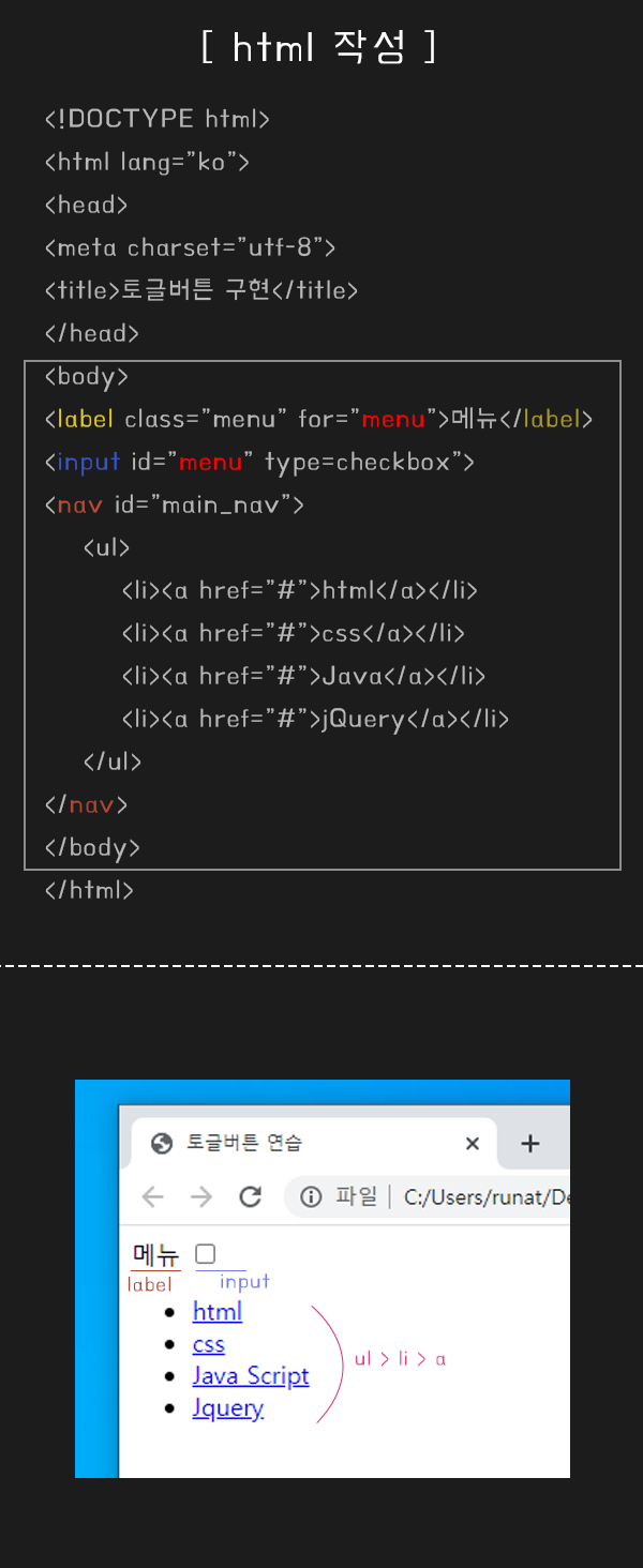 [ css ] 토글버튼 - 메뉴버튼 클릭 시 나타나게 만들기_ :checked