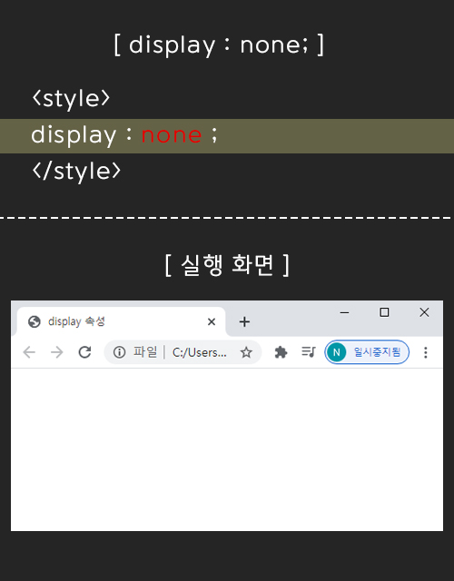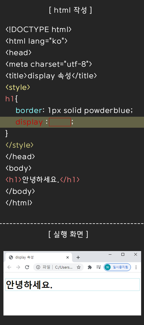 이제 css를 실행시켜주는 style 태그 안에 display 속성을 하나씩 적용시켜보자.