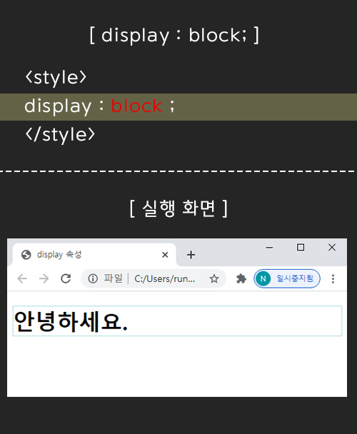 style 태그 안에 display : block ; 속성을 적어주면,