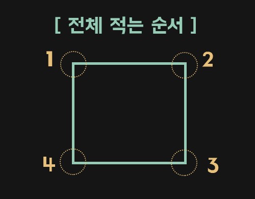 왼쪽위를 맨 처음으로 적어주고 왼쪽아래를 맨 마지막에 적어주면 된다.