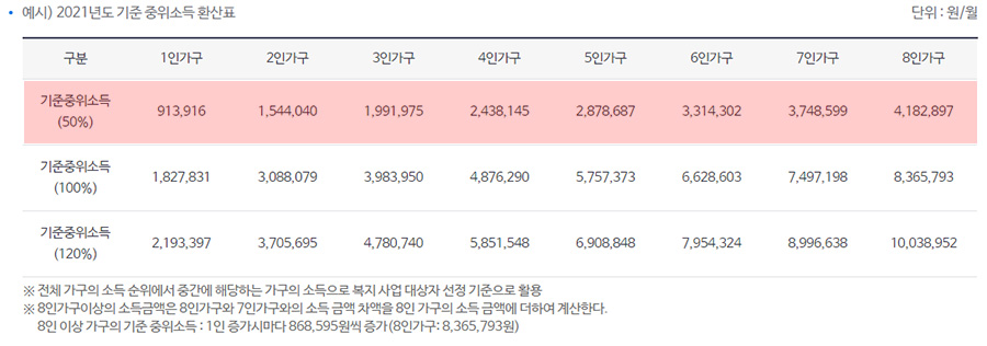 - 신청인 본인의 월평균 총소득이 1인 가구 기준 중위소득 50% 초과한 사람